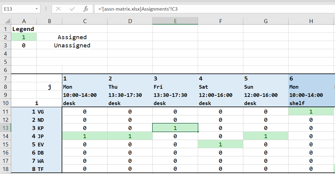 # staff x shift binary assignment matrix